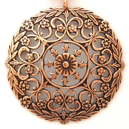 Round Copper Mandala Earrings Large 35mm Open Florentine Style Solid Copper Drop Earrings