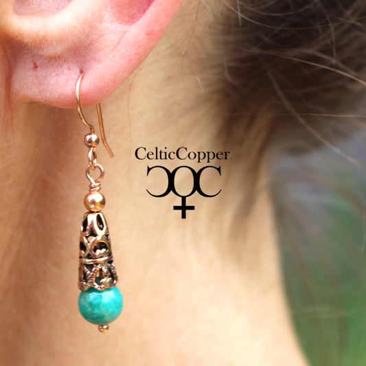 Copper Amazonite Earrings With Handmade Vintage Copper Cone Beads 8mm Amazonite Bead Earrings