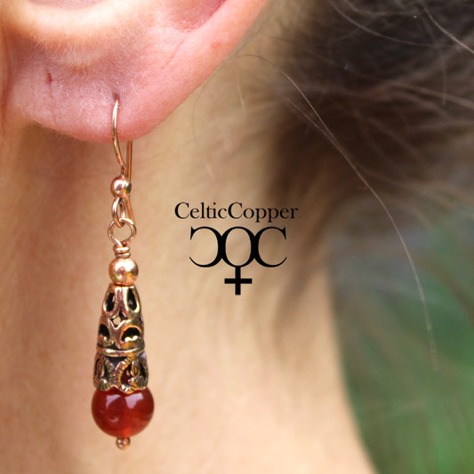 Copper Carnelian Earrings With Handmade Vintage Copper Cone Beads 8mm Carnelian Agate Earrings