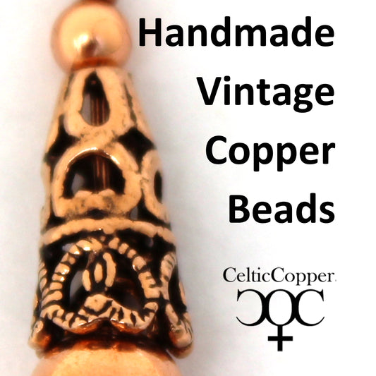 Copper Drop Designer Earrings With Handmade Vintage Cone Beads And Round 8mm Copper Bead Earrings