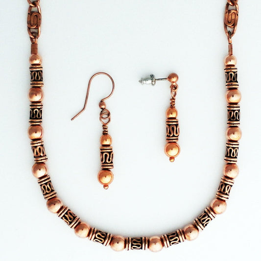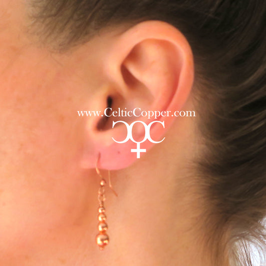 Solid Copper Earrings with Graduated Round Beaded Drops ECD50 Solid Copper Beaded Dangle Earrings