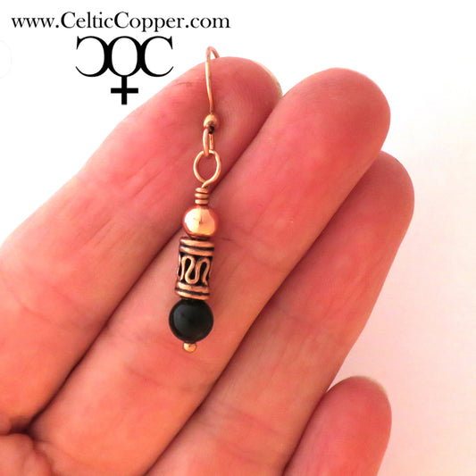 Copper Drop Earrings With Black Obsidian And Handmade Copper Beads ECPX Solid Copper Dangle Style Earrings