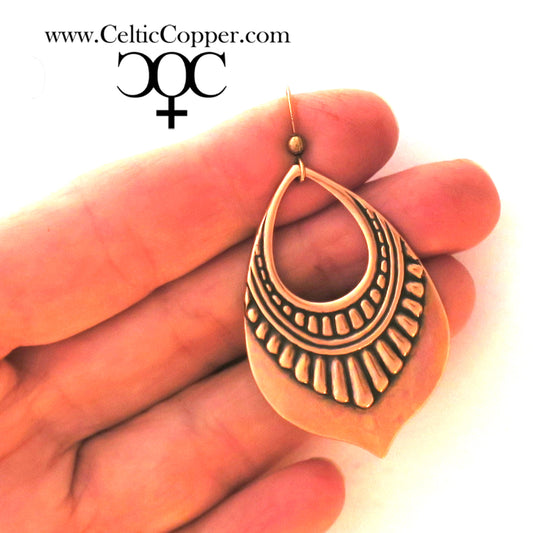 Copper Earrings Oval Teardrop Fan Copper Dangle Earrings EC4 Solid Copper Drop Earrings