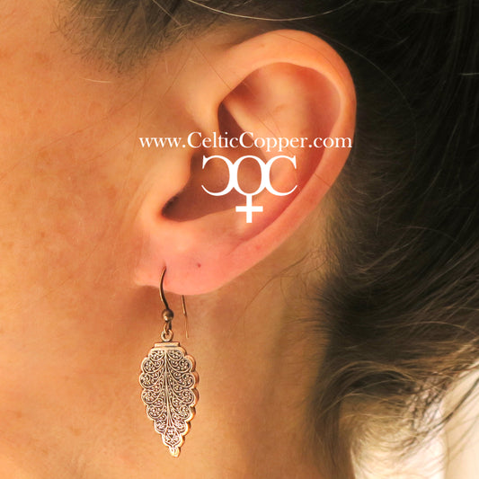 Copper Earrings Paisley Copper Drop Feather Earrings EC4 Solid Copper Dangle Earrings Feather Design Drop Earrings
