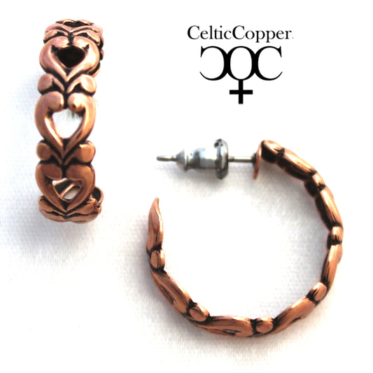Flowing Heart Copper Hoop Earrings EC119 Solid Copper Jewelry Post Style Copper Hoop Earrings