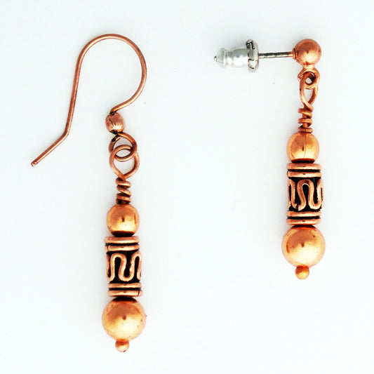 Solid copper earring studs, drops, and dangles. Choose from copper ear wires, copper ball post earring findings and surgical steel earring options.