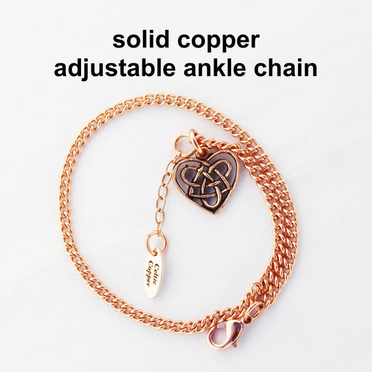 Solid Copper Ankle Bracelet Medium Celtic Scroll Chain Anklet AC66 Medium Weight Adjustable Solid Copper Anklet Chain