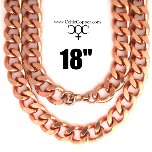 Men's Super Chunky 16mm Copper Cuban Curb Chain Set Solid Copper 18 Inch Copper Necklace Matching Bracelet Chain