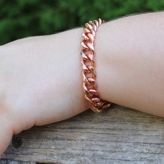 Copper Curb Chain Bracelet Bold 10mm Pure Copper Bracelet Chain All Sizes Strong Magnetic Clasp