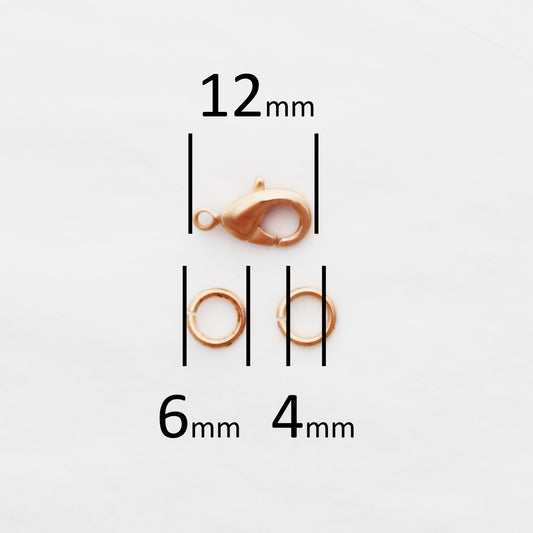Copper Jewelry Repair Kit 12mm Shiny Copper Plated Brass Lobster Clasp 6mm Ring Complete 3-Pc Set