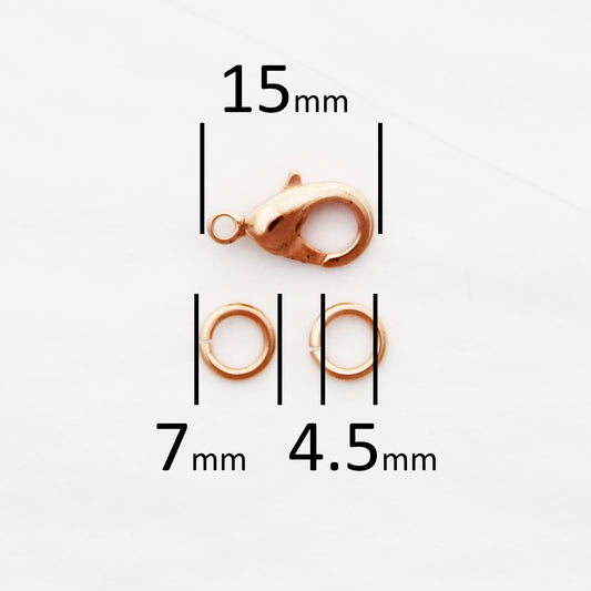 Copper Jewelry Repair Kit 15mm Shiny Copper Plated Brass Lobster Clasp 7mm Ring Complete 3-Pc Set