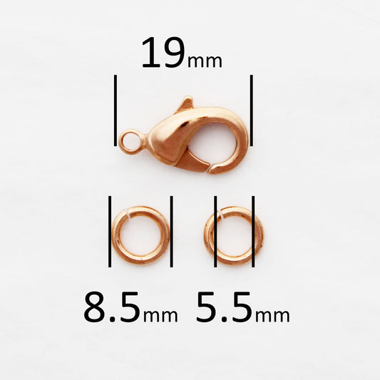 Copper Jewelry Repair Kit 19mm Shiny Copper Plated Brass Lobster Clasp 8.5mm Ring Complete 3-Pc Set