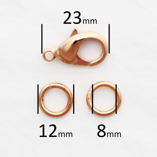 Copper Jewelry Repair Kit 23mm Shiny Copper Plated Brass Lobster Clasp 12mm Ring Complete 3-Pc Set