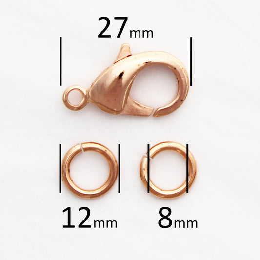 Copper Jewelry Repair Kit 27mm Shiny Copper Plated Brass Lobster Clasp 12mm Ring Complete 3-Pc Set