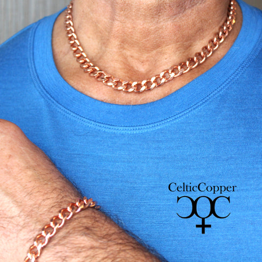 Copper Jewelry Set Heavy 10mm Cuban Curb Chains Solid Copper Necklace Matching Copper Bracelet Set