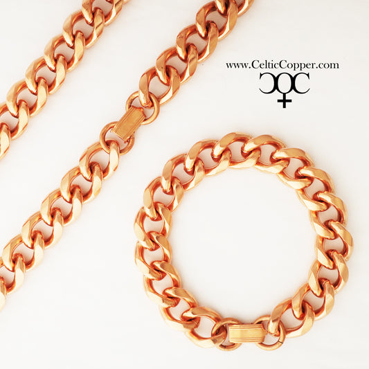 Copper Necklace Chain Set For Men Heavy 13mm Duty 18" Curb Chain Necklace And Matching Bracelet