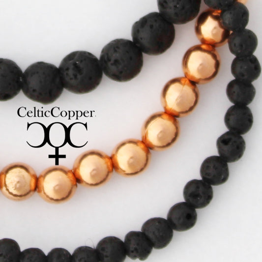 Lava Rock Copper Bracelet Set Round Beaded Elastic Grounding Hematite Copper Bracelets 3 Piece Set