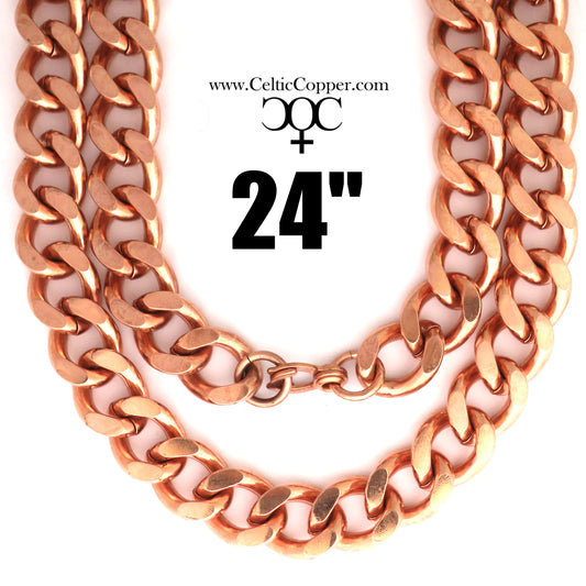 Men's Copper Chain Set Chunky 16mm Copper Cuban Curb Chain Set Solid Copper 24 Inch Necklace Matching Copper Bracelet Chain