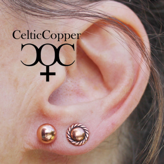 Copper Stud Earrings 2 Pair Set Round Copper Ball Studs Rope Edge Stud Earrings