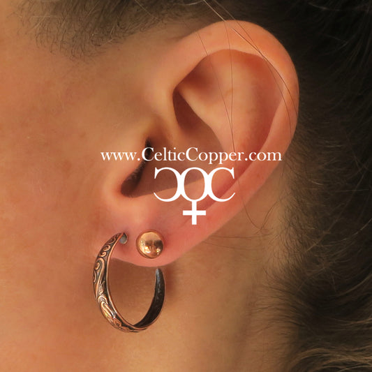 Copper Stud Earrings 2 Pair Set 7mm Round Solid Copper Stud / Floral Hoop Earrings