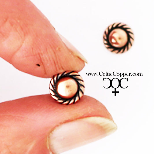 Copper Stud Earrings 2 Pair Set Solid Copper Rope Edged Copper Earring Studs