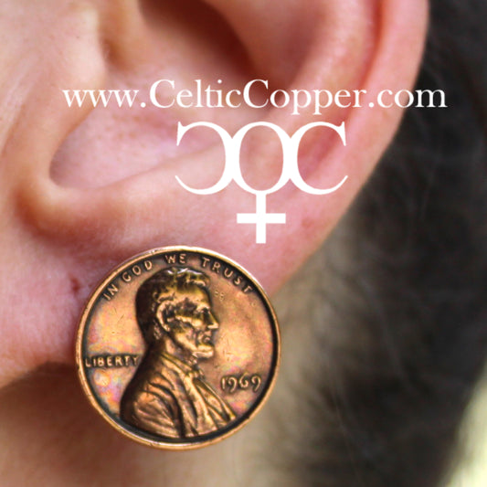 Copper Earring Studs US Penny Perfect Coin Replica 19mm American Copper Penny Earring Studs