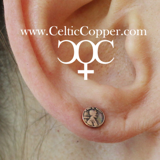 Copper Earring Studs US Penny Mini 5mm One Cent Coin Replica American Copper Penny Earring Studs