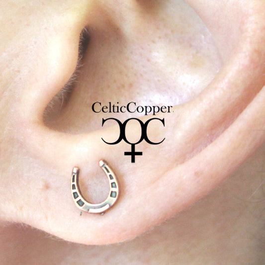 Copper Horse Shoe Stud Earrings With Hypoallergenic Earring Posts Equestrian Copper Earring Studs