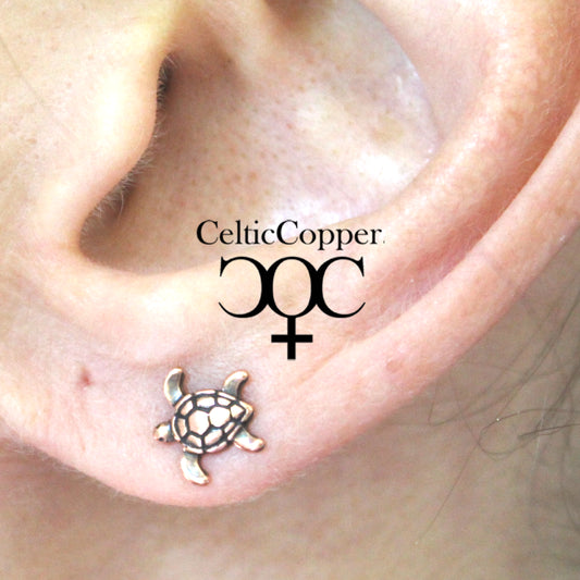 Copper Sea Turtle Stud Earrings With Hypoallergenic Steel Earring Posts Copper Turtle Earring Studs