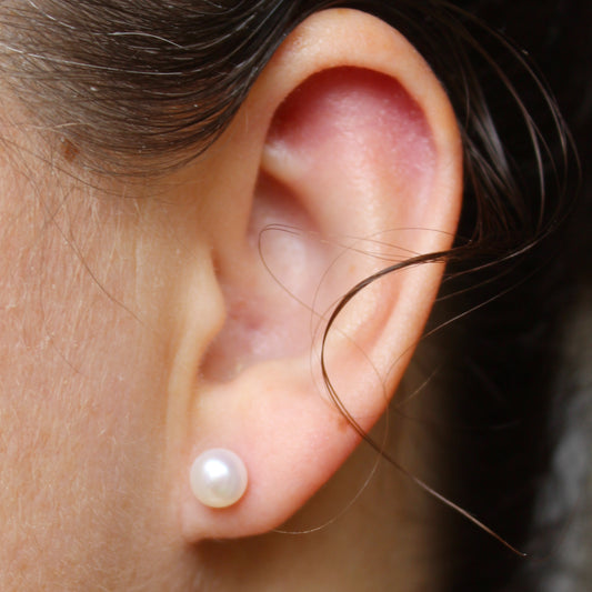 Pearl Stud Earrings Sterling Silver Posts Round 6mm Creamy White Natural Pearl Silver Stud Earrings