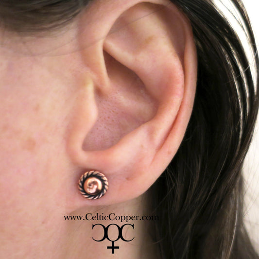 Rope Edged Copper Earring Studs EC12 Solid Copper Jewelry Post Earrings with Hypoallergenic Steel Posts