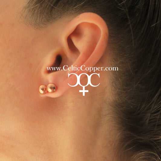 Copper Stud Earrings 2 Pair Set 7mm Round Solid Copper Ball Stud Earrings