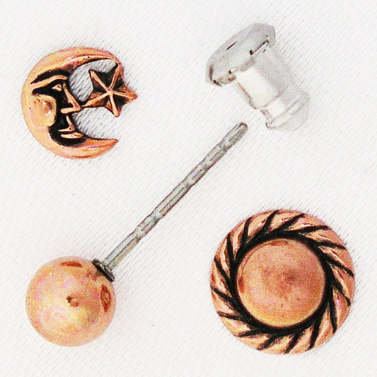 Copper Stud Earrings 2 Pair Set Round Copper Ball Studs Rope Edge Stud Earrings