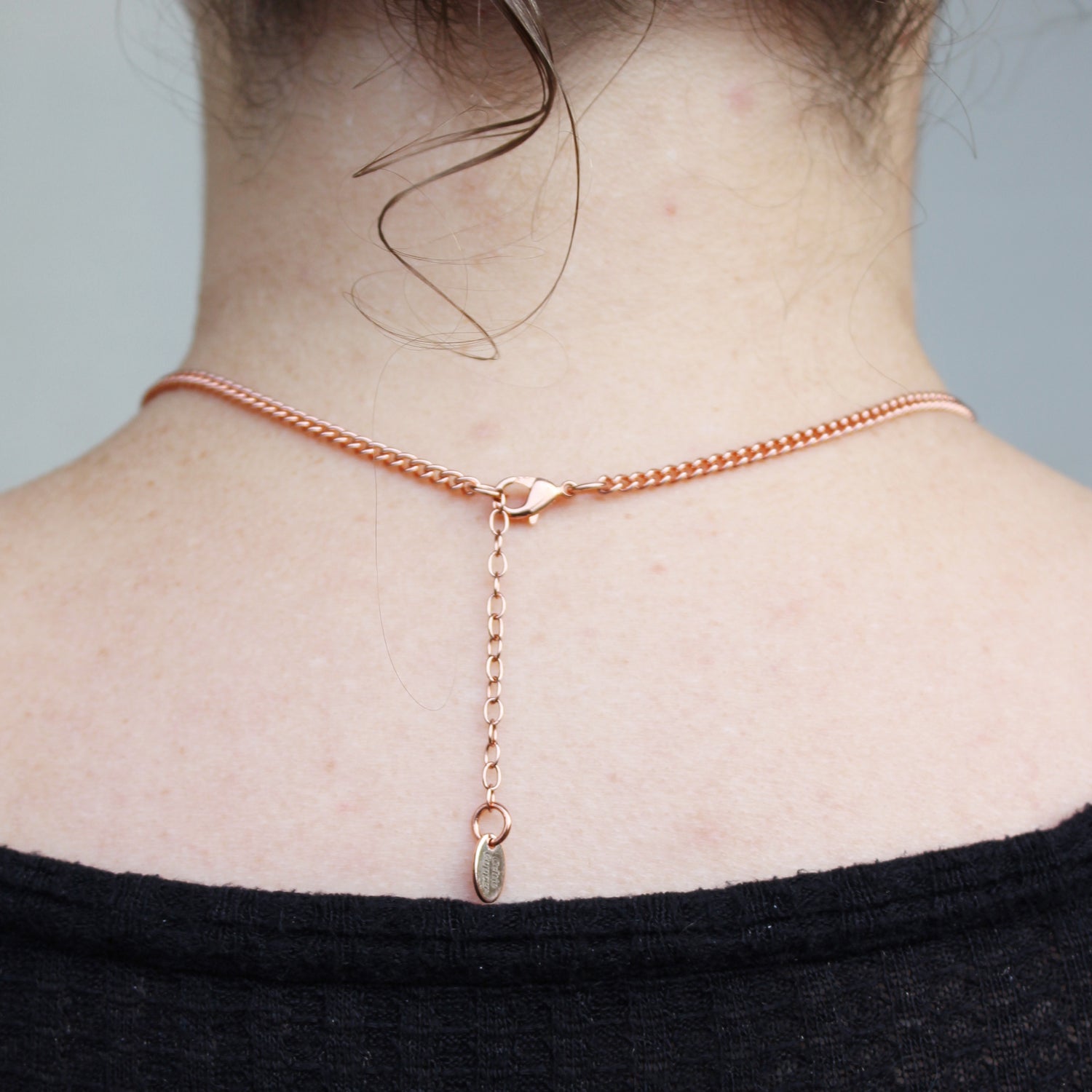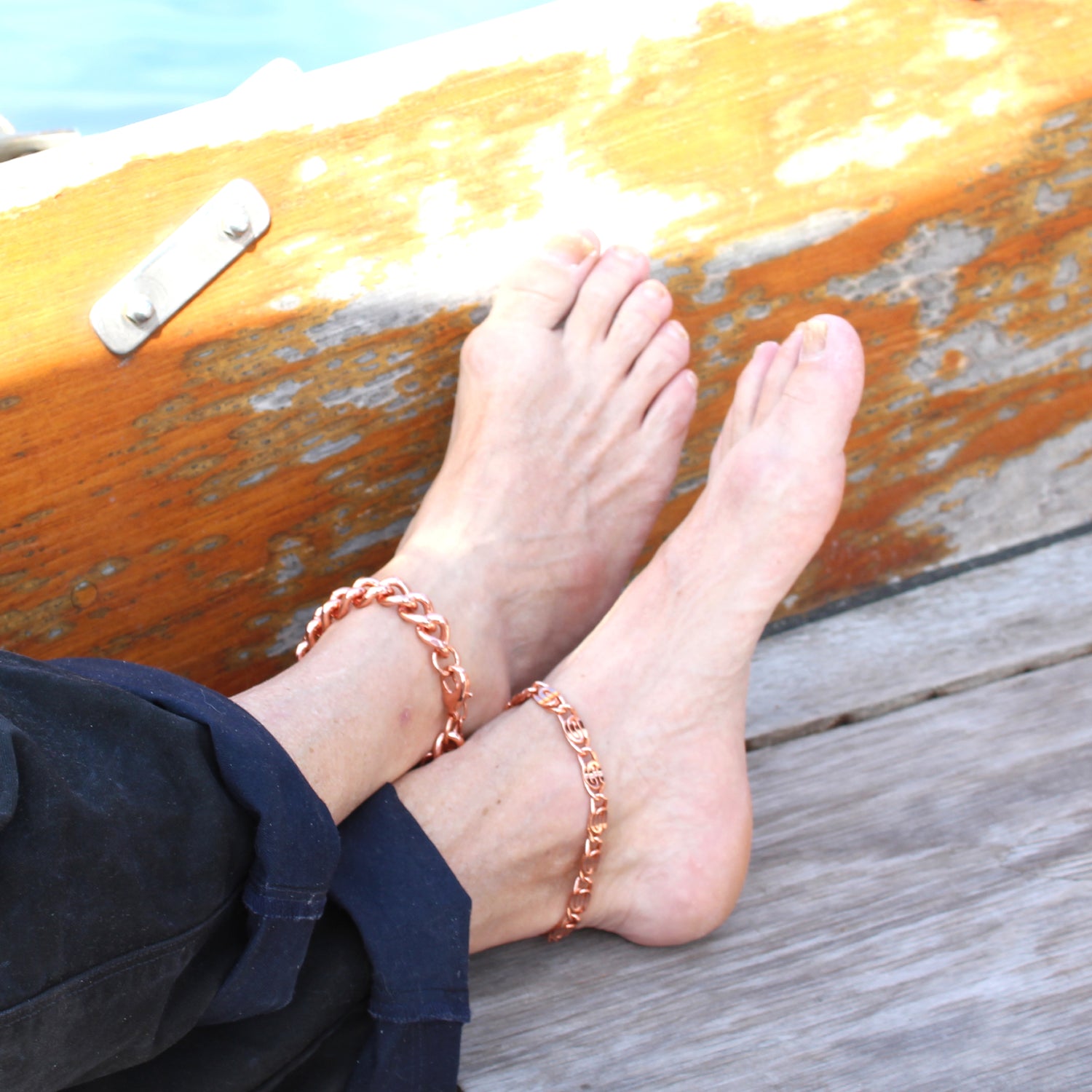 All of our jewelry chains and pendant charms are made of solid 100% copper. We offer multiple sizes and finishing options that allow our customers to express their unique style. Most of our designs can be ordered with solid copper findings and fasteners as well as copper-plated brass options. We also offer custom sized jewelry chains in a wide range of sizes from extra-small to extra-large.