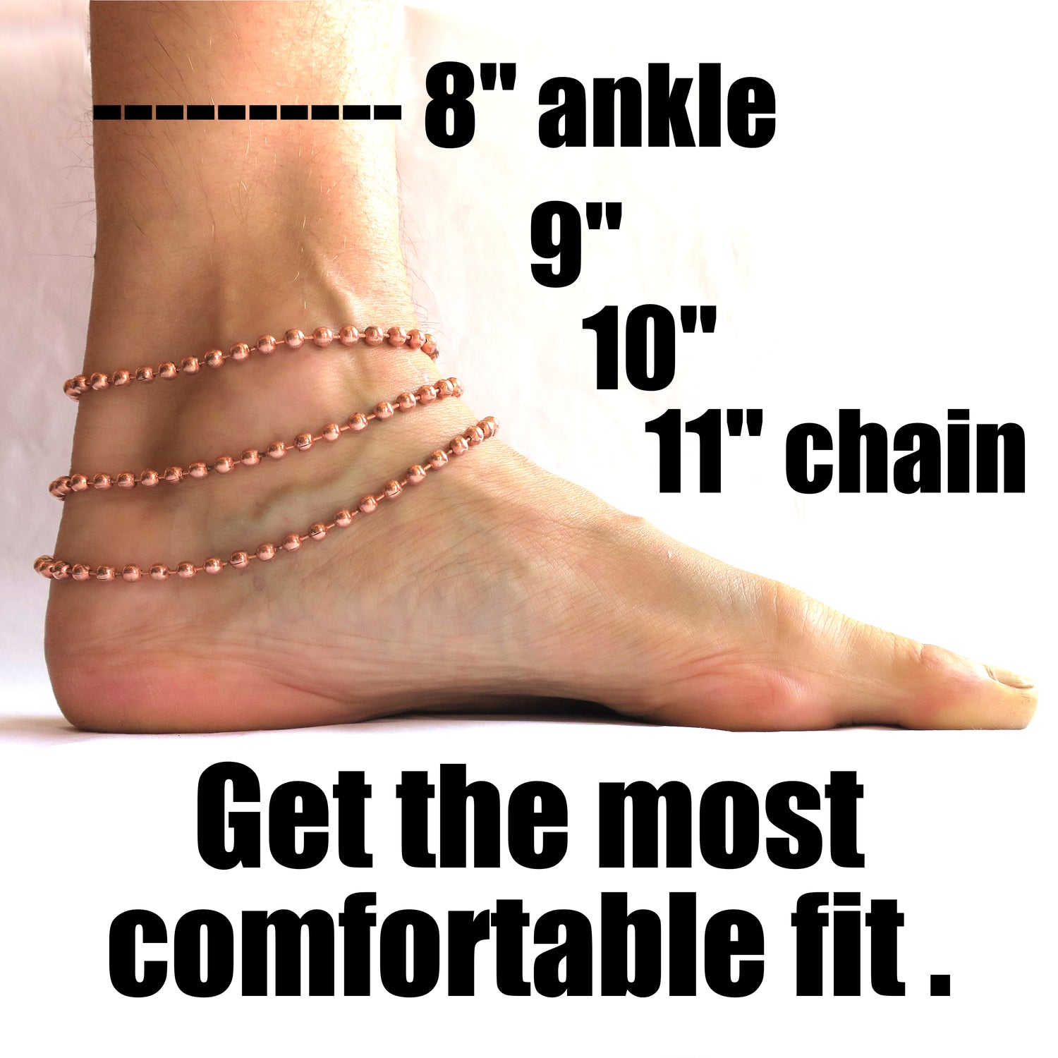 Adjustability: A person's ankles, even more so than a person's wrists can fluctuate in size making your ankle chain feel tight.
