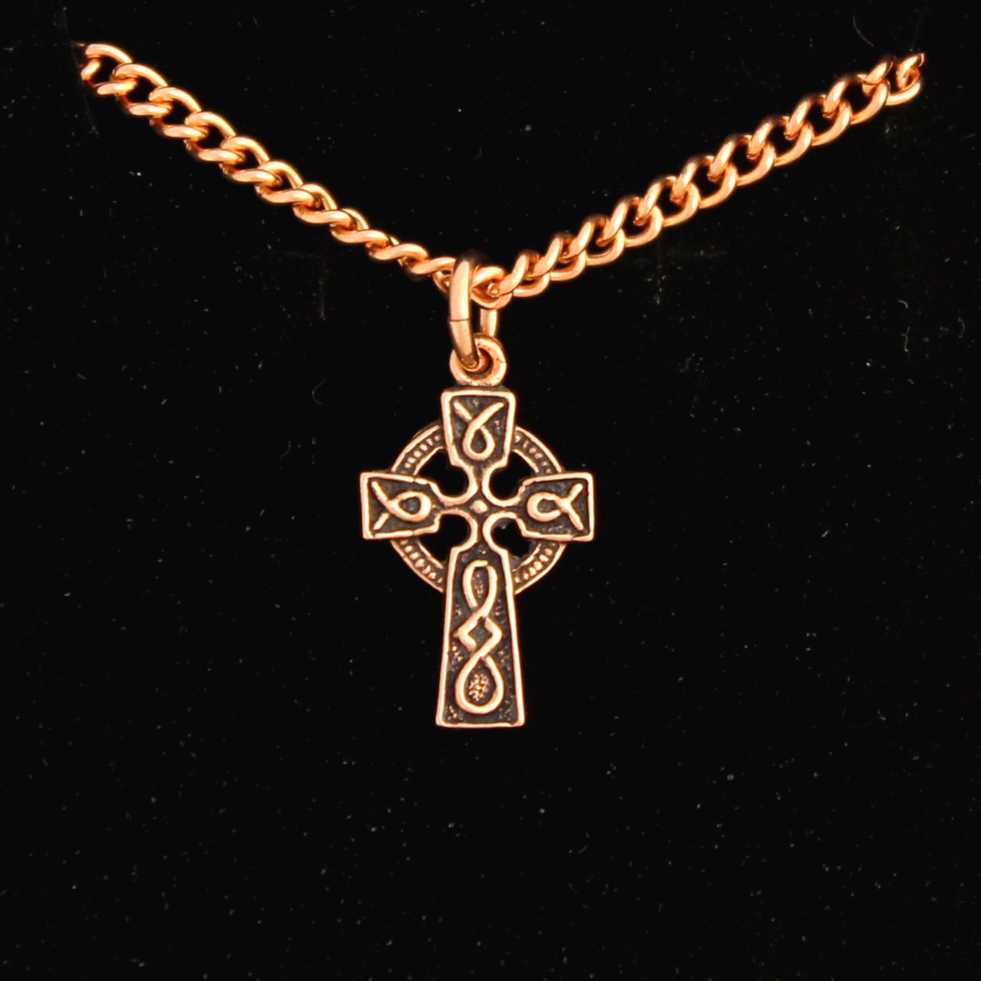 This Solid Copper Celtic Cross Charm Pendant Necklace embodies unending faith and divine protection. The finely detailed know work Celtic Cross design is made of solid copper and accented by an antique finish.