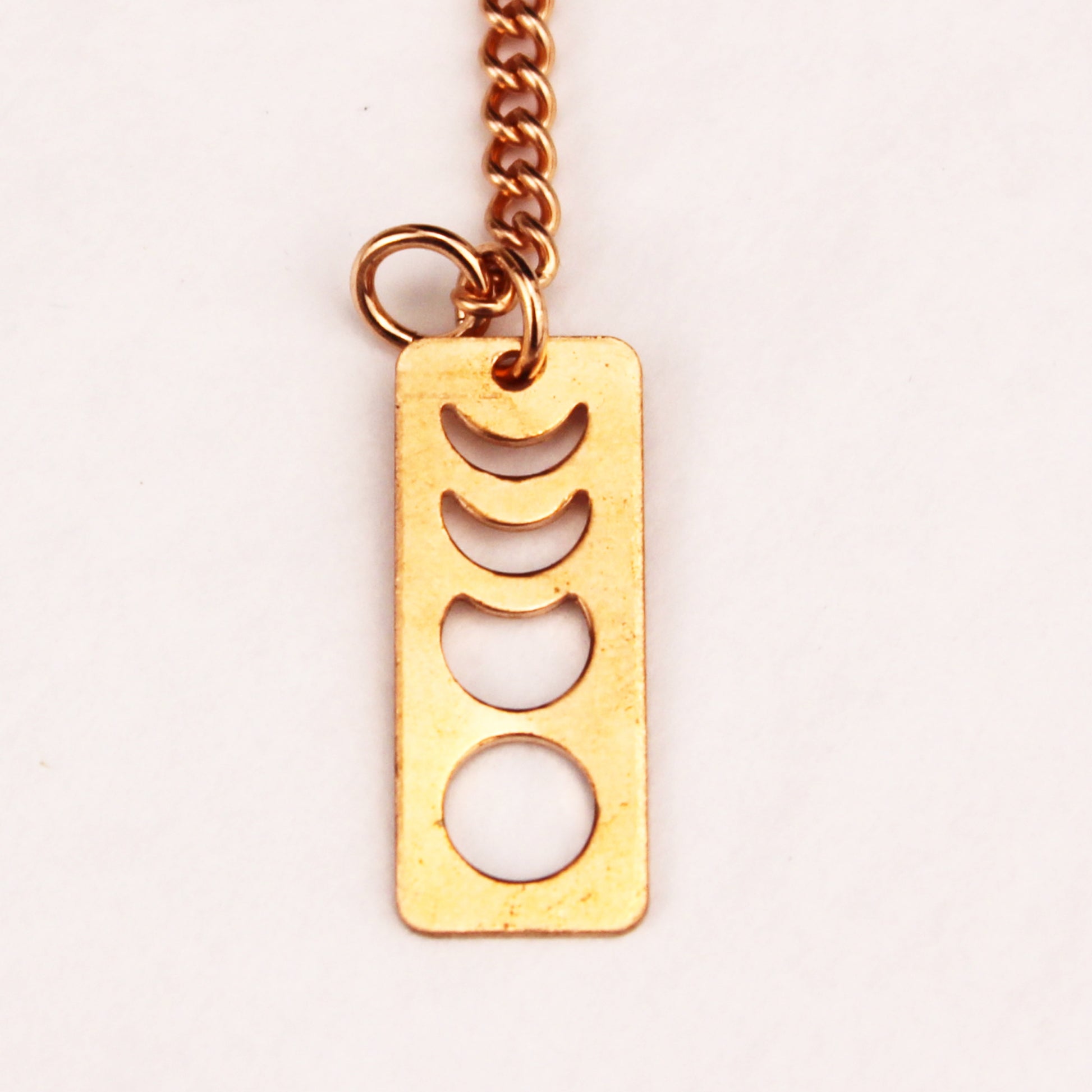 Copper Moon Phase Charm Necklace Solid Copper Curb Chain Necklace With Lunar Moon Phase Pendant