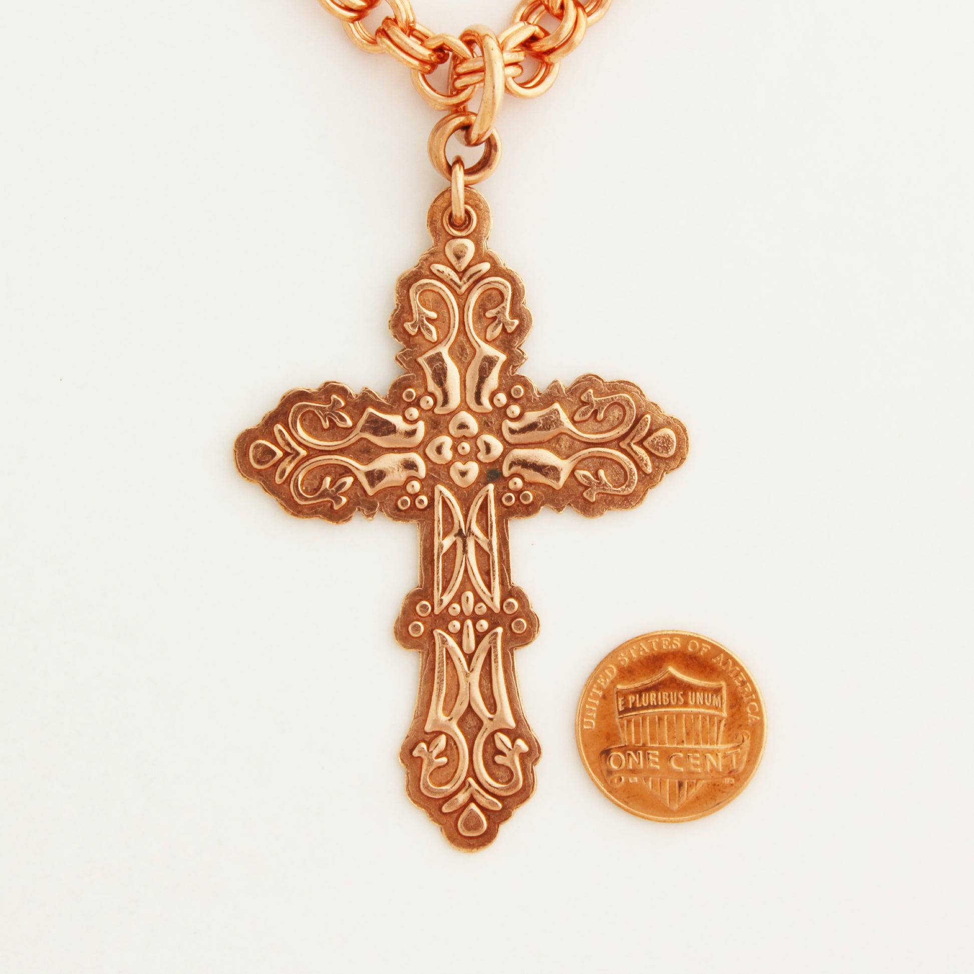Copper Cross Necklace Large Embossed Pure Copper Cross Pendant 7mm Double Cable Chain Necklace