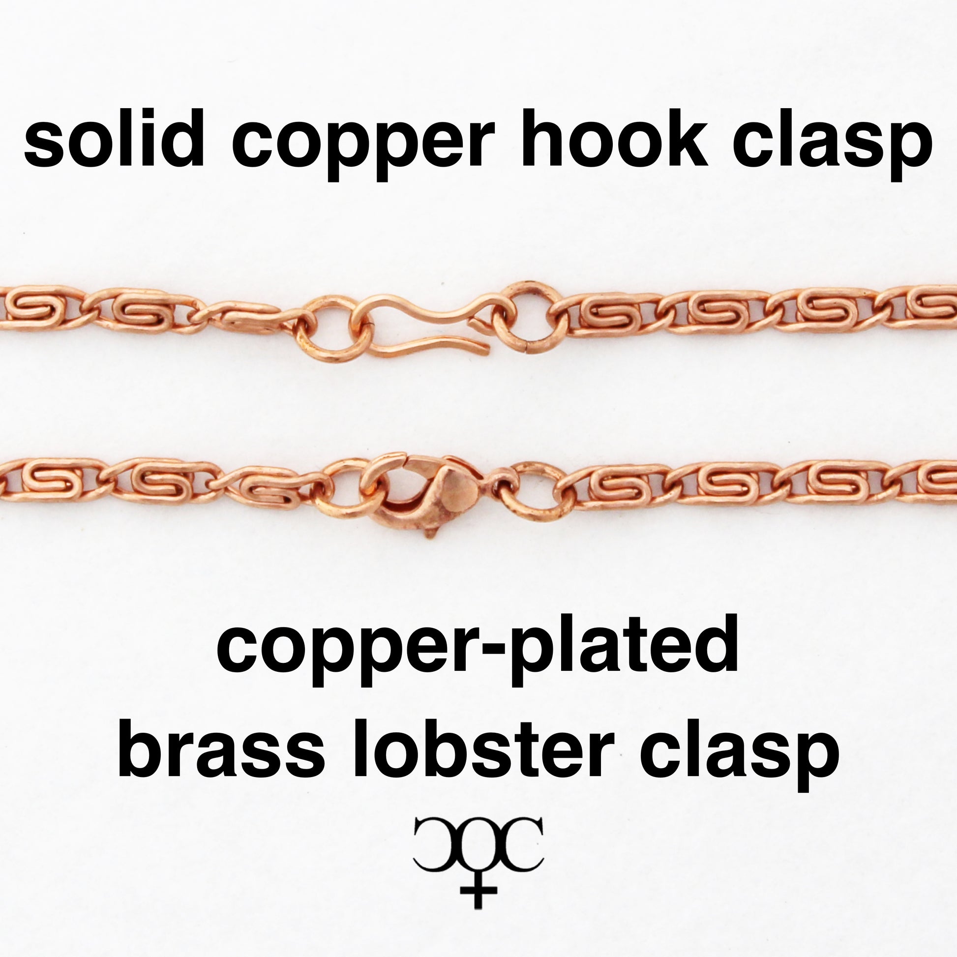 A person's ankles can fluctuate in size. Our copper anklet chains feature an extra inch of adjustability for a perfect fit every time. The extra inch is built in with a piece of light, strong soldered brass chain plated to match in bright shiny copper. Order copper anklets in the size that fits best, and we’ll add that little extra for you.