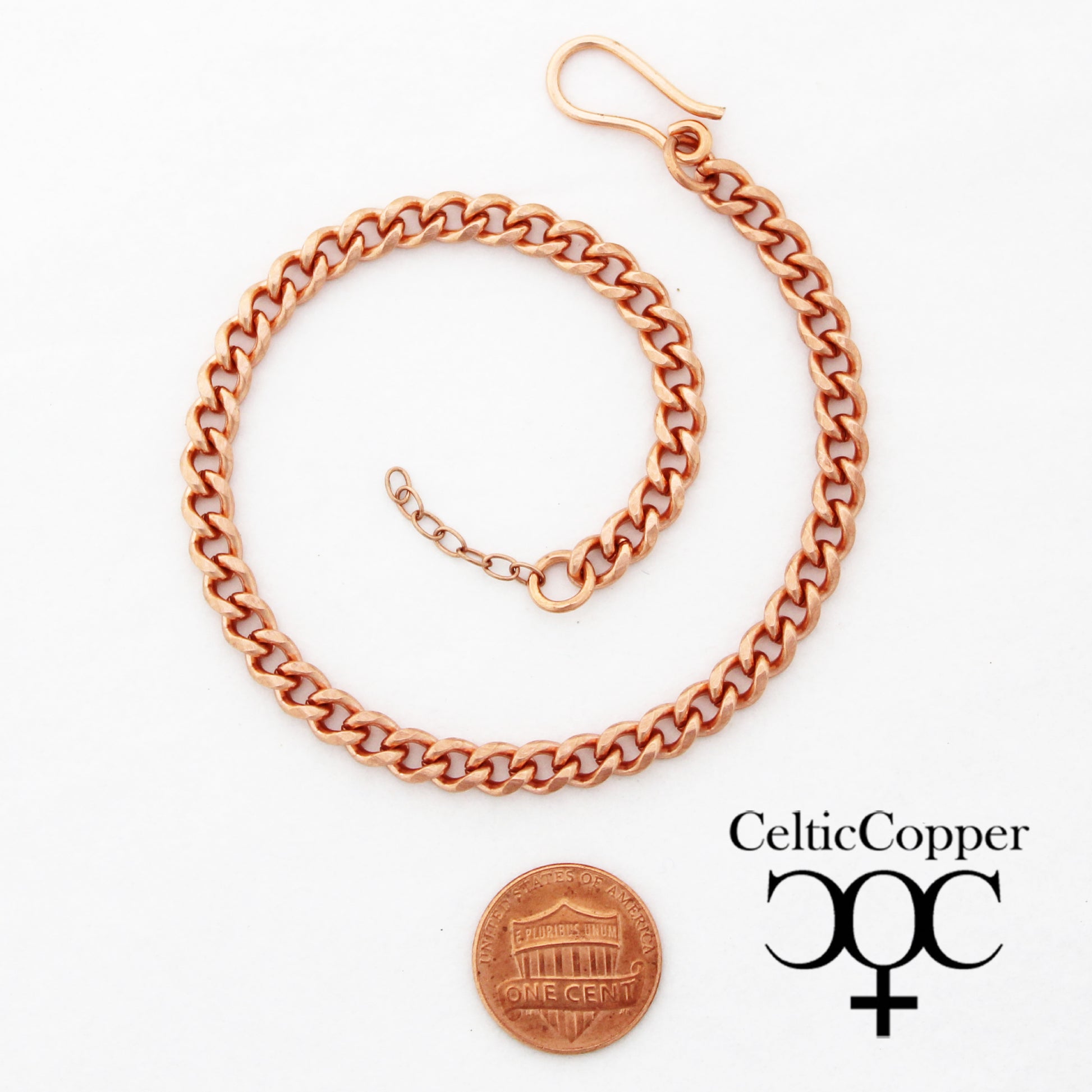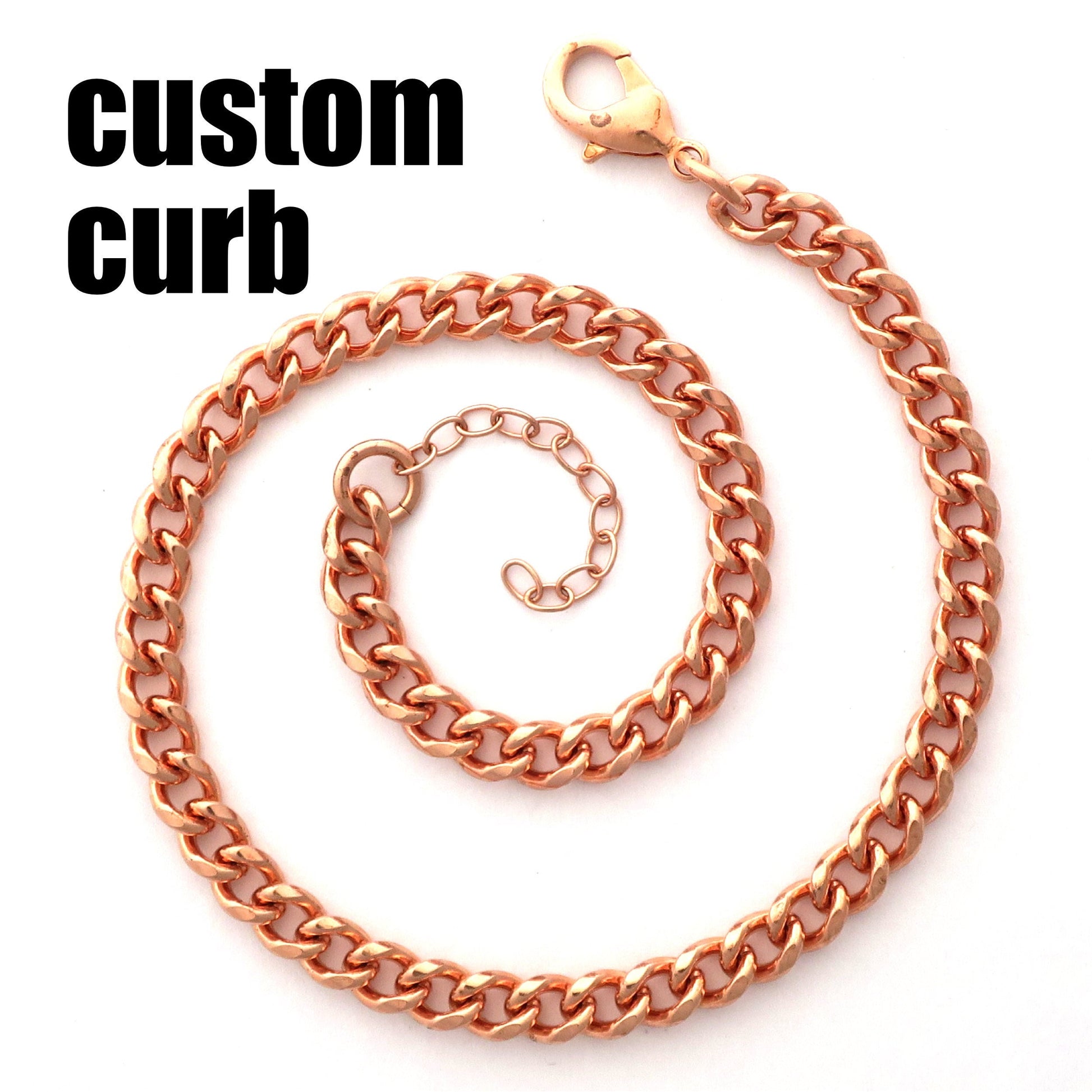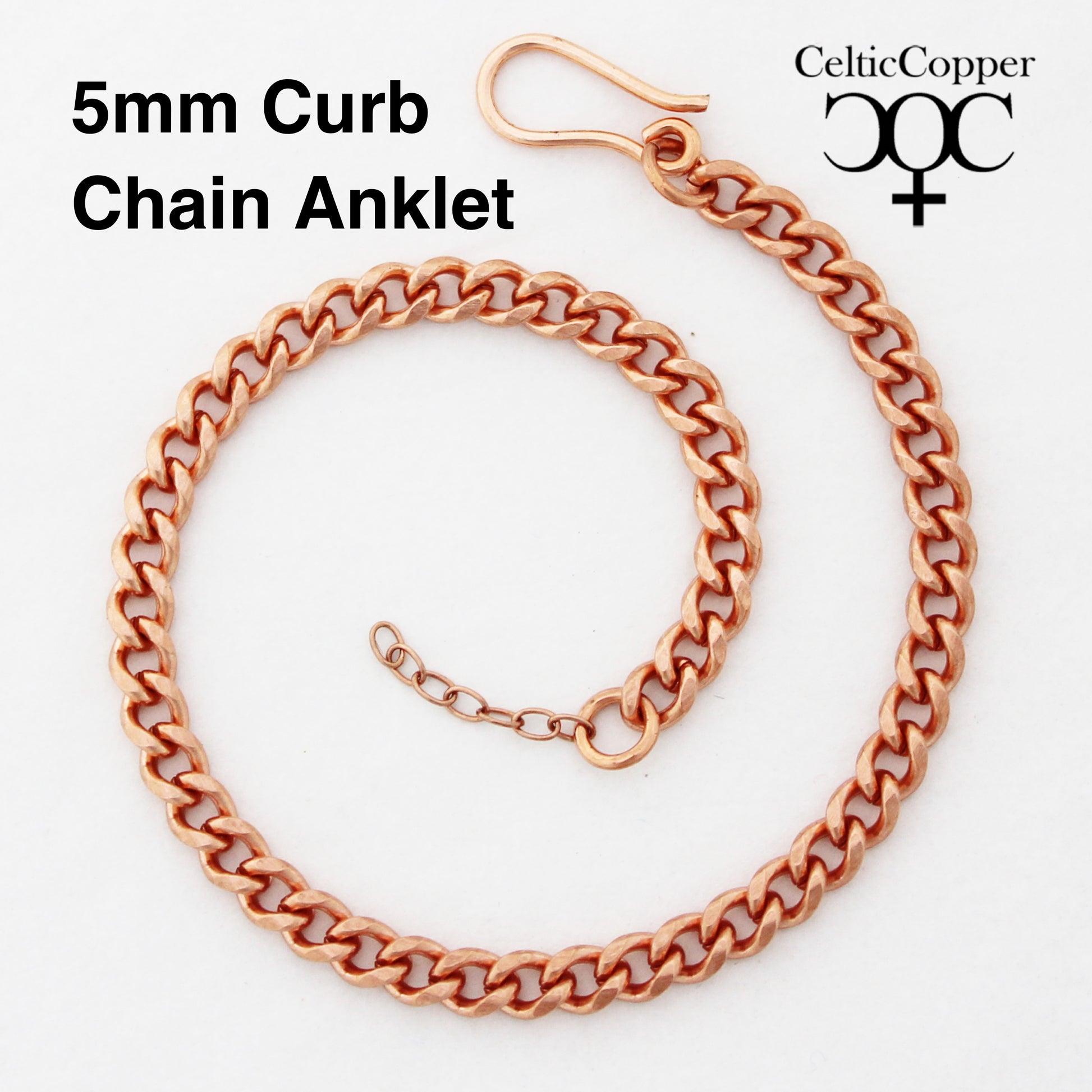 Need a custom anklet size? Order a solid copper medium curb chain anklet from our extended size list and get the fit you want.Your custom anklet comes with a chain extender so you can fine tune your fit to a fraction of an inch.