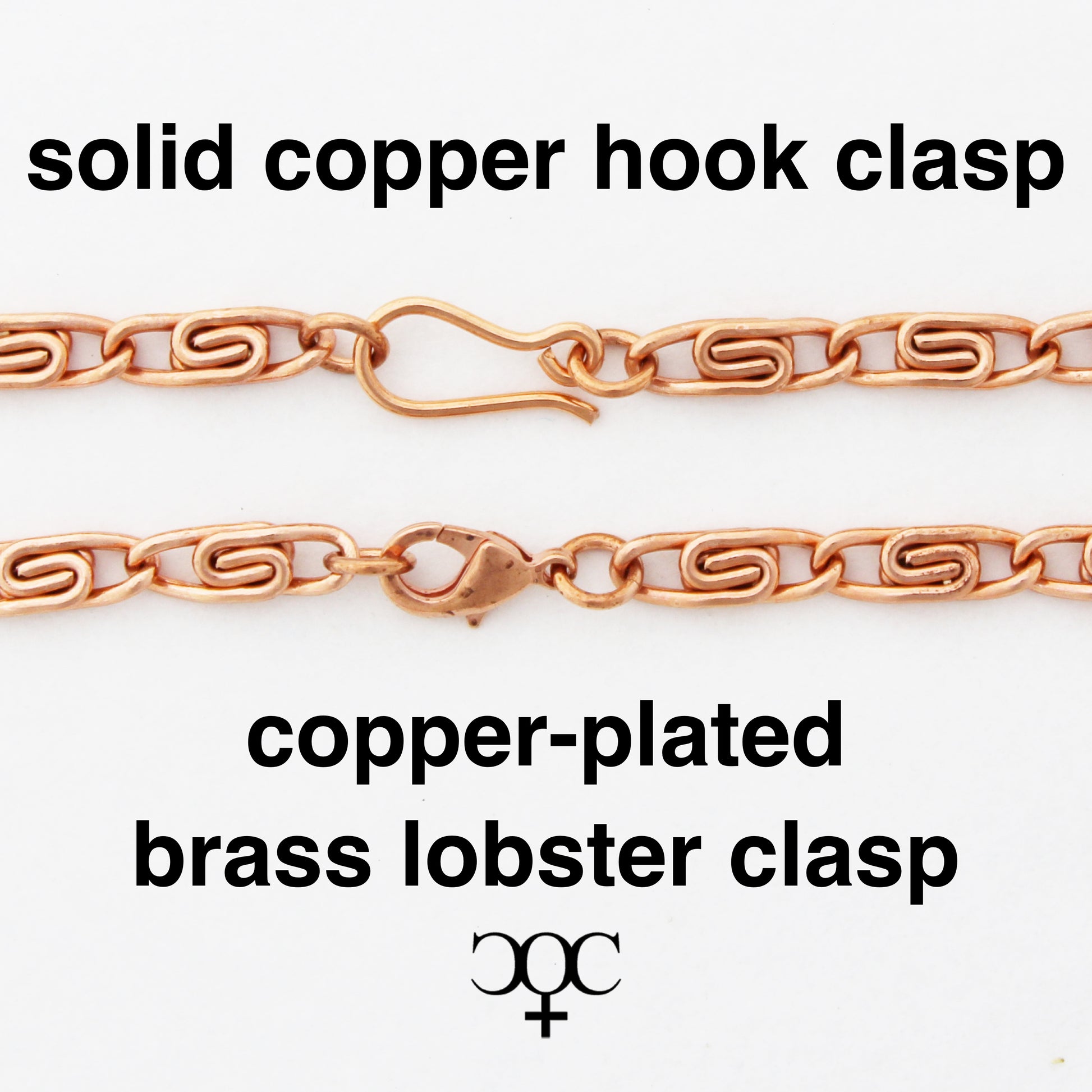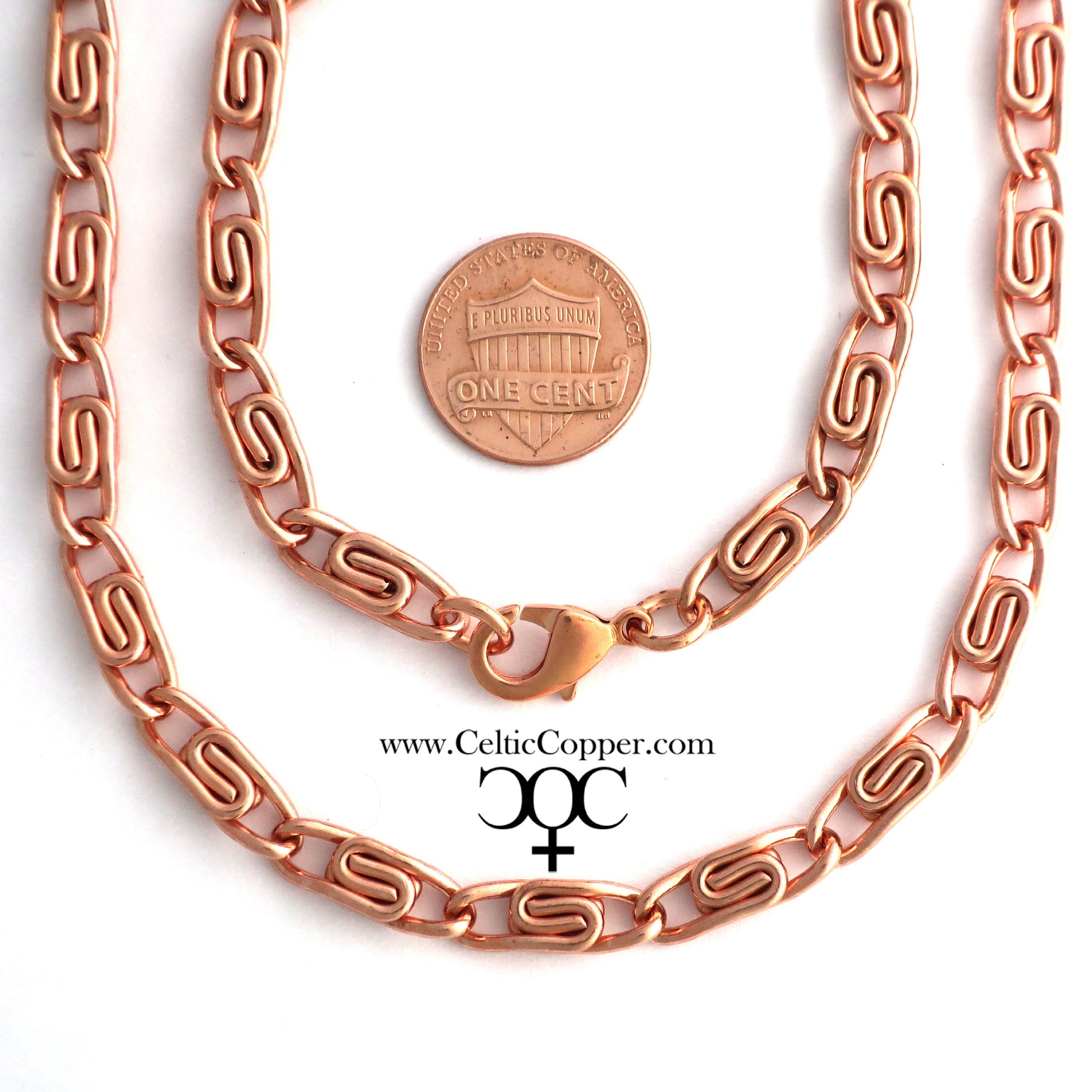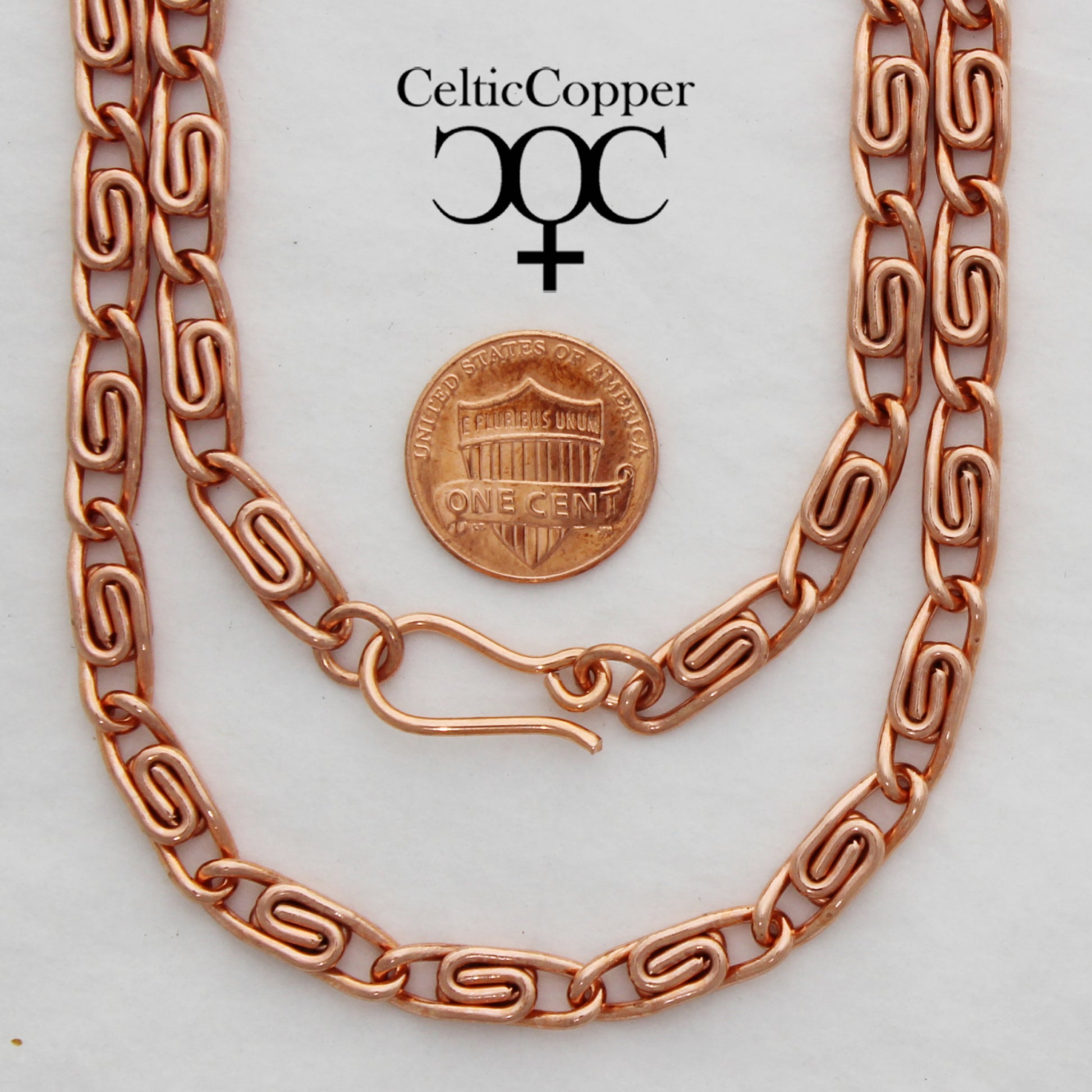Our Medium Celtic Scroll Chain Necklace is made of pure healing copper like the rest of our quality copper jewelry. Choose both the length of the necklace and the style of clasp you prefer.