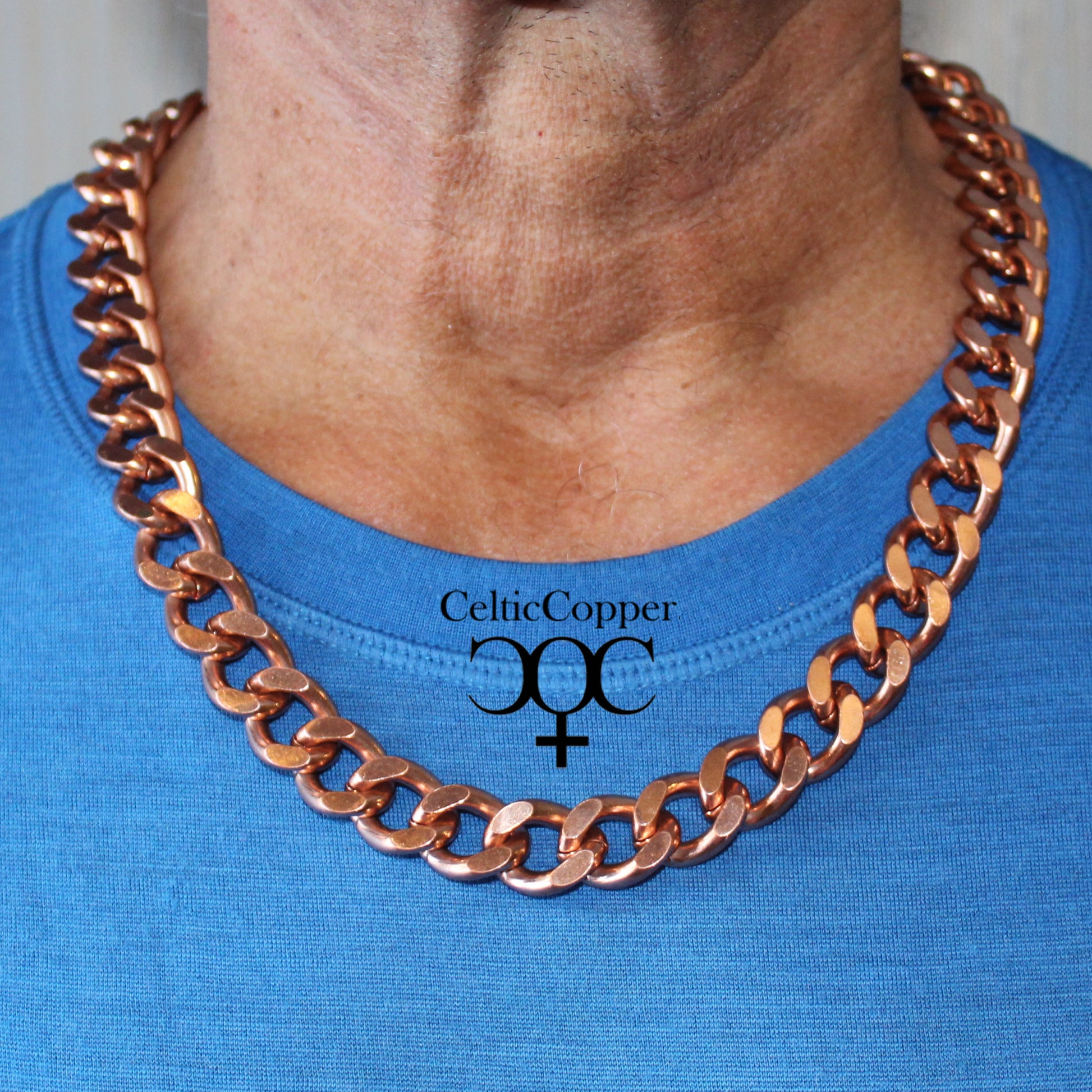 Men's Copper Chain Set Chunky 16mm Copper Cuban Curb Chain Set Solid Copper 24 Inch Necklace Matching Copper Bracelet Chain
