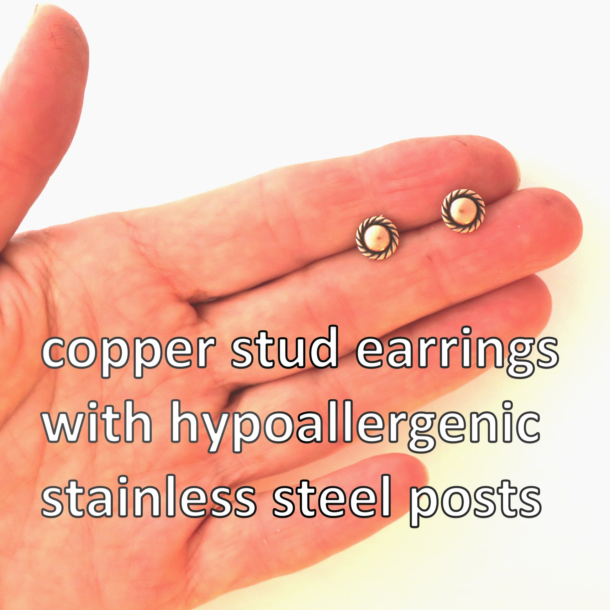 Rope Edged Copper Earring Studs Solid Copper Jewelry Post Earrings with Hypoallergenic Steel Posts