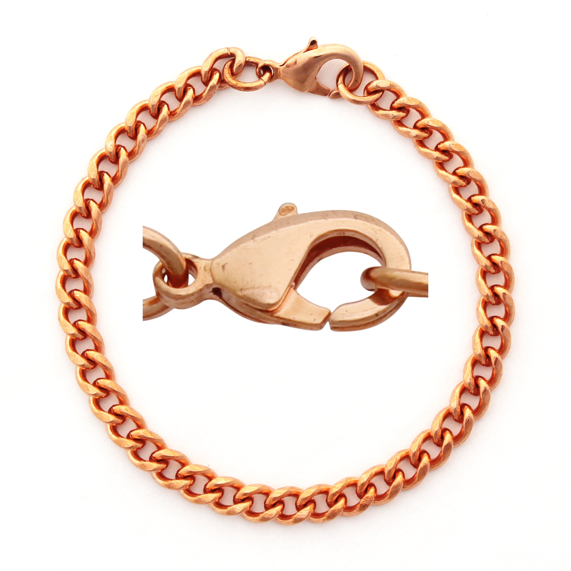 The clean, simple lines of this copper curb chain bracelet makes a classic addition to any jewelry collection. With a wire size of 1.52mm the medium 5mm wide curb chain is bold enough to be noticed yet light and easy to wear. The pure copper Cuban curb chain bracelet is one of our best choices for fashion, comfort and value.
