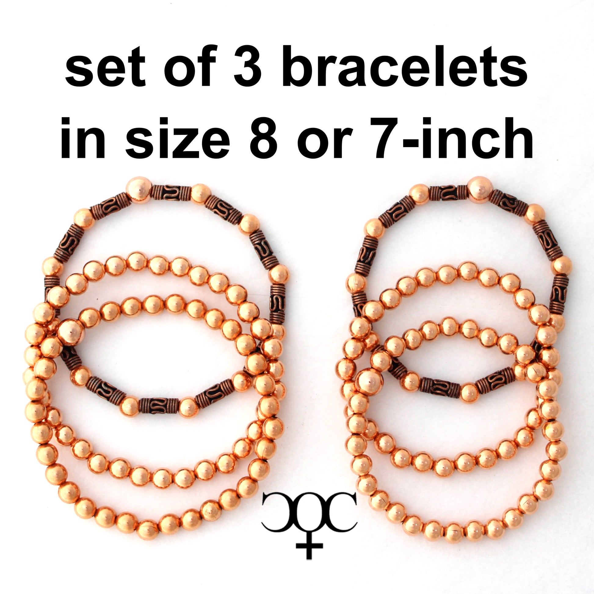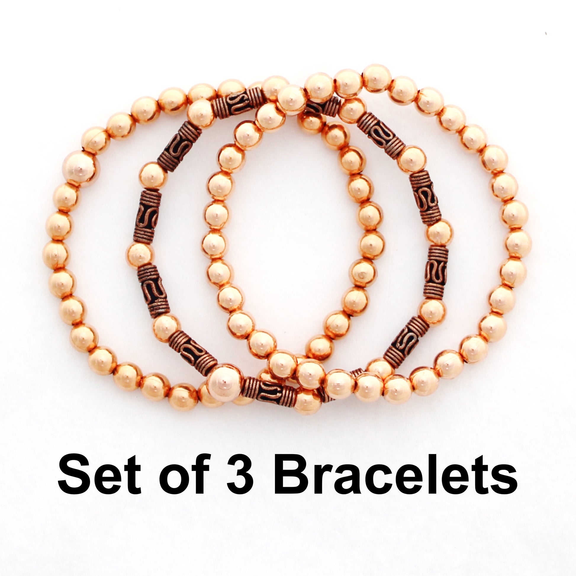 Set of 3 Copper Beaded Bracelets Round Beaded Elastic Bracelets Handmade Vintage Copper Bracelet
