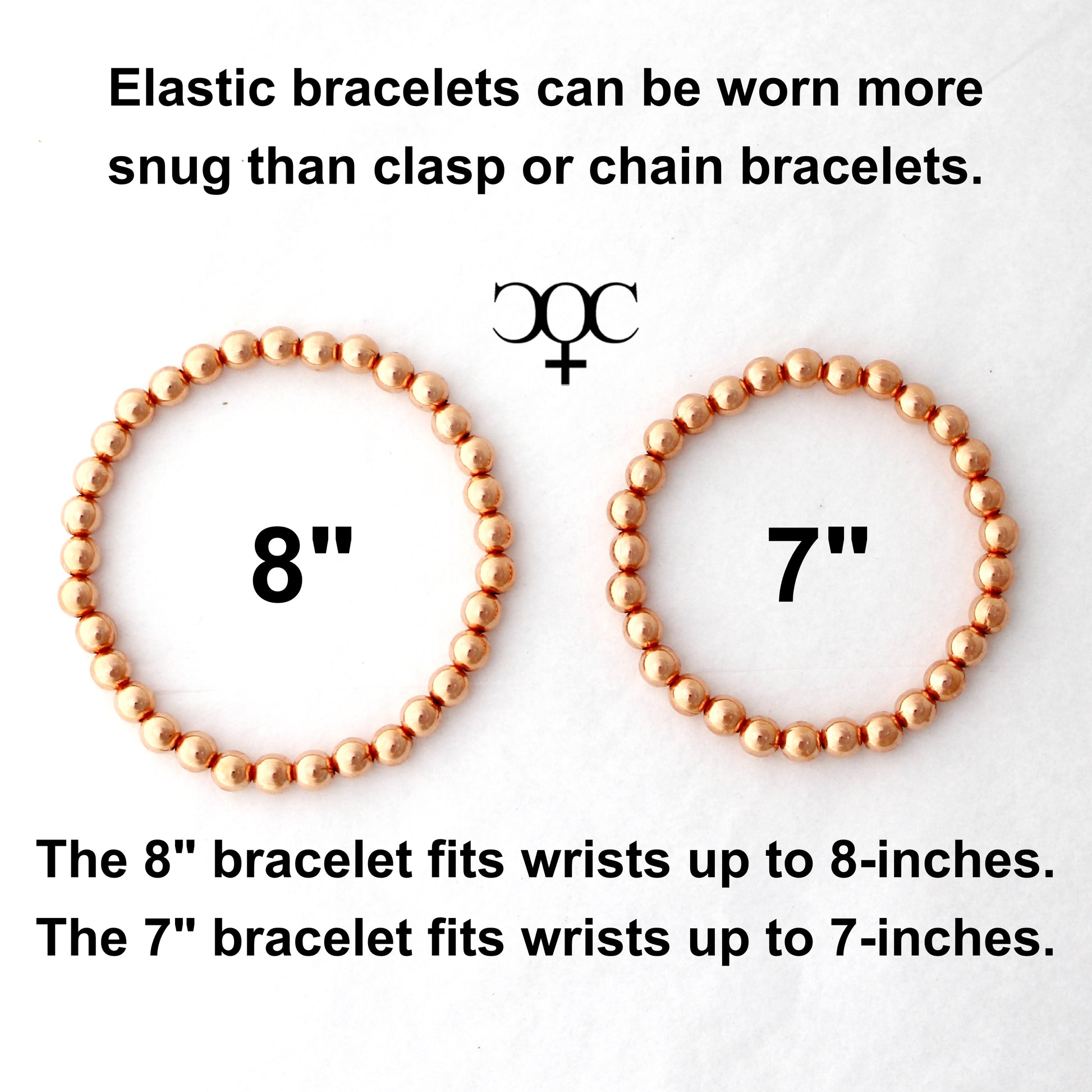 Easy wear elastic bracelets make perfect fashion sense. There are no tiny clasps to open or close, no one-handed fastening, just slip on and slip off for effortless style. Check your size for a perfect fit.